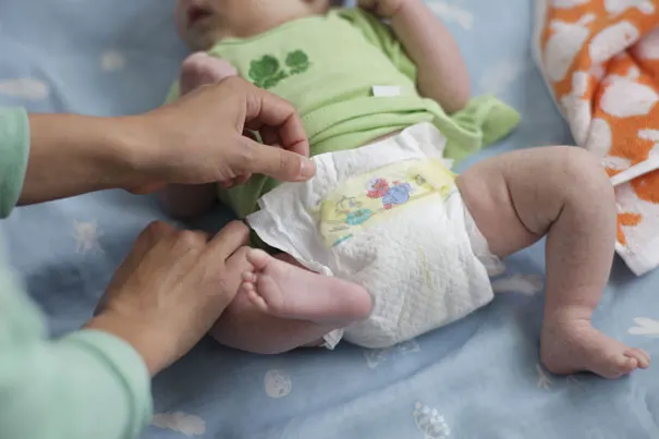 Muista tarkistaa vaippa säännöllisesti ja vaihtaa vaippa aina kakan, unilta heräämisen ja syömisen jälkeen.