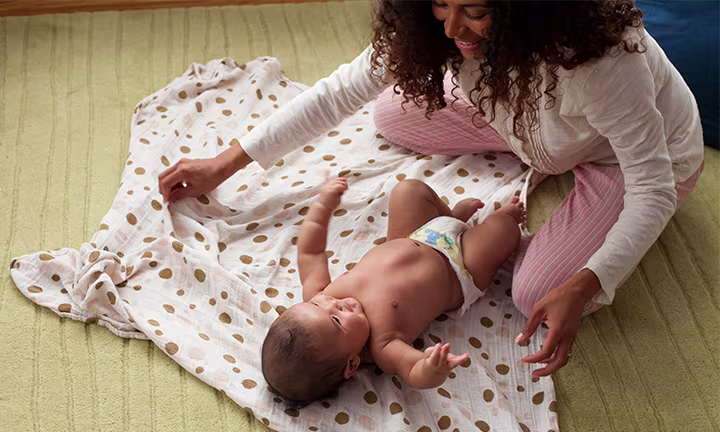 Puolen vuoden ikäisenä ympäröivä maailmaa kiehtoo lastasi yhä enemmän ja on selvää, että hän haluaa leikkiä ja liikkua. Tässä iässä lapset ovat yleensä hyvin aktiivisia hoitopöydällä, he yrittävät tarttua asioihin ja haluavat kieriä. Nyt voit kokeilla useita leikkejä, jotka stimuloivat lapsesi motorisia taitoja ja kehotietoisuutta. “Aja” lapsen jaloilla lempeästi polkupyörää ja käännä häntä sivulta toiselle samalla laulaen. Voit myös kokeilla kääntää hänet hellästi kokonaan mahalleen ja takaisin selälleen…