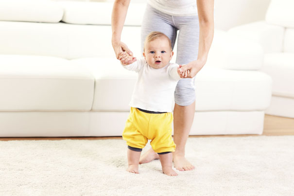 Nousee seisomaan, ja ei osaa aina laskeutua alas. (Lapsi oppii tämän kyllä pian.)